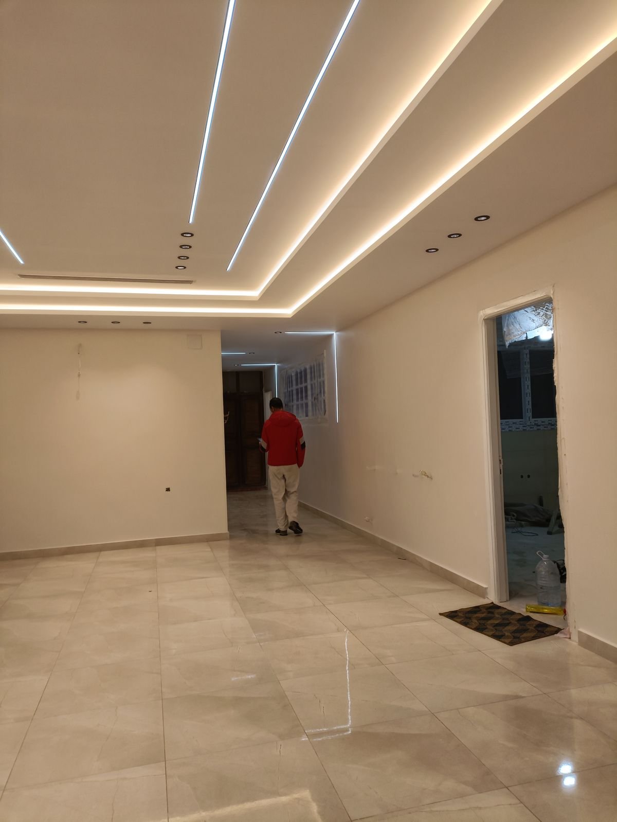 بعد جفاف الطبقة الأساسية، يتم تنفيذ أي لمسات ديكورية أو جدران بارزة (Accent Walls) حسب التصميم المتفق عليه، مثل الدهانات المخملية أو المعدنية أو المؤثرات الفنية. يتم التأكد من دقة الخطوط وتناسق الألوان لإبراز جمال المساحات.
