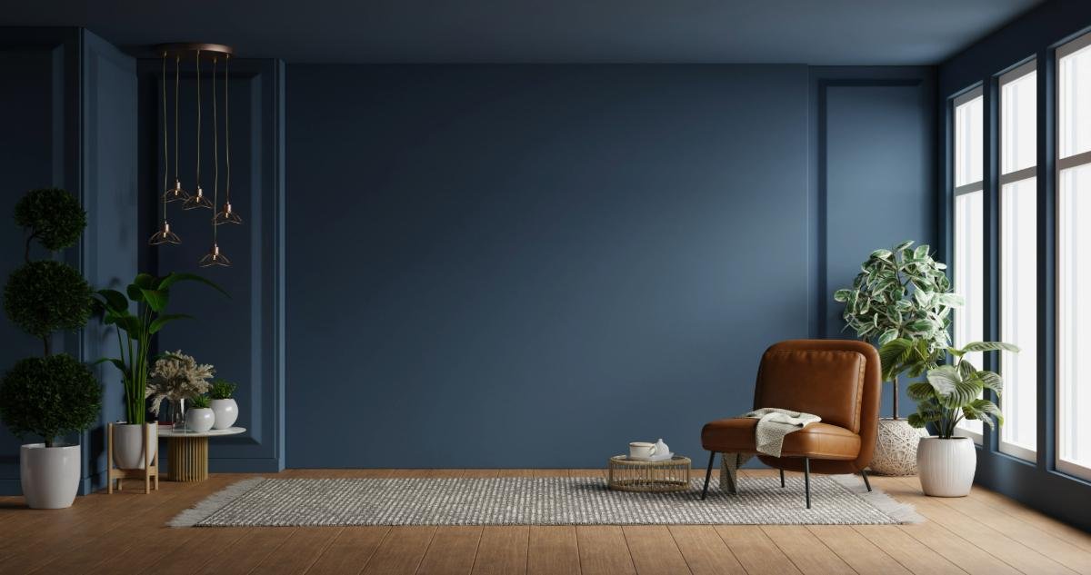 اختيار جدار واحد بلون جريء مثل الأزرق الملكي أو الأخضر الزمردي لإبراز جمال المساحة.